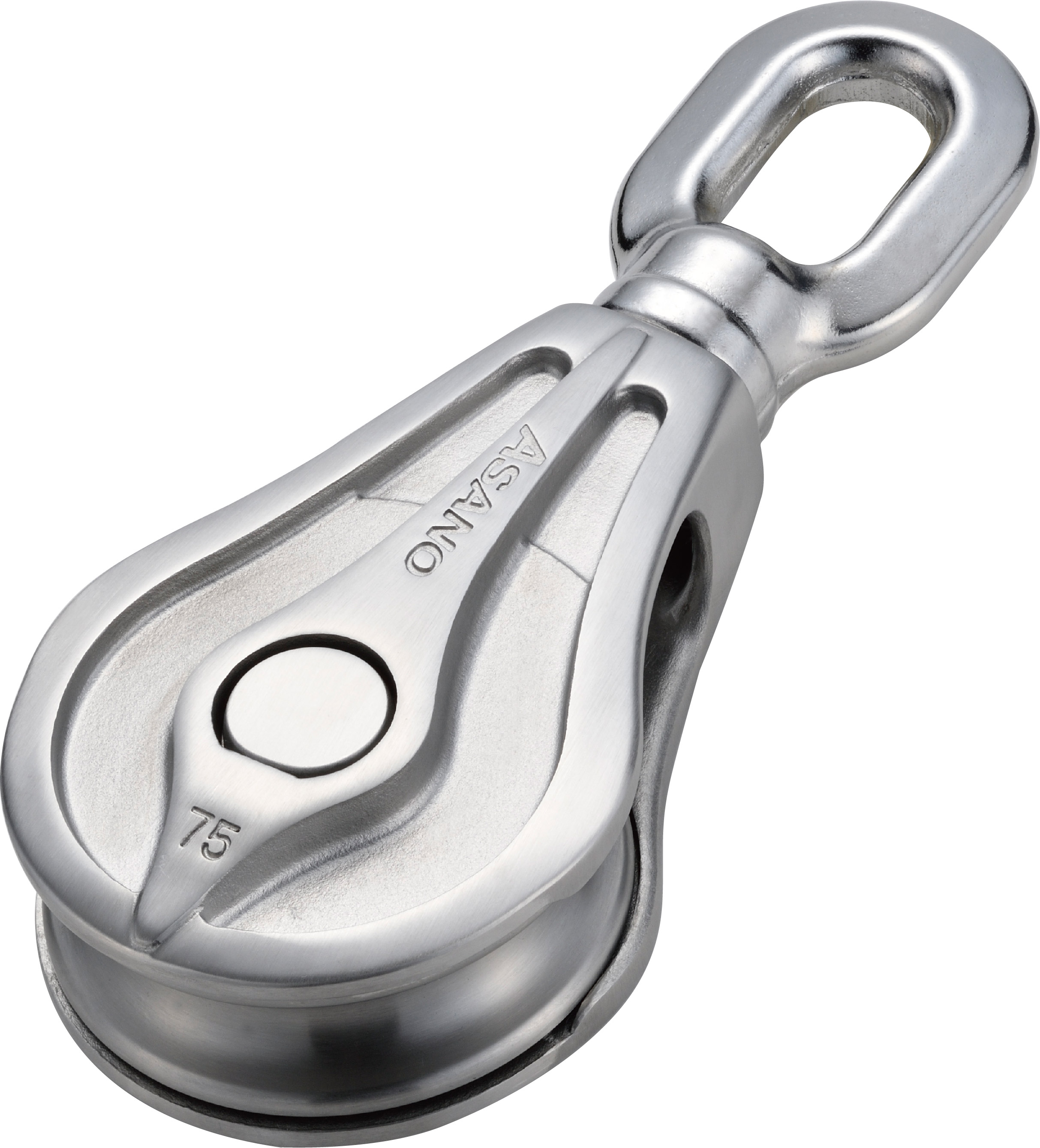 Un modelo muy versátil con rodamiento. El perno que conecta el eslabón giratorio es un tamaño más grueso que el de las poleas anteriores para mayor resistencia. La roldana está diseñada para estar en el cuerpo principal y evitar que las cuerdas se enganchen. También está disponible el modelo con rodamiento de acero inoxidable.