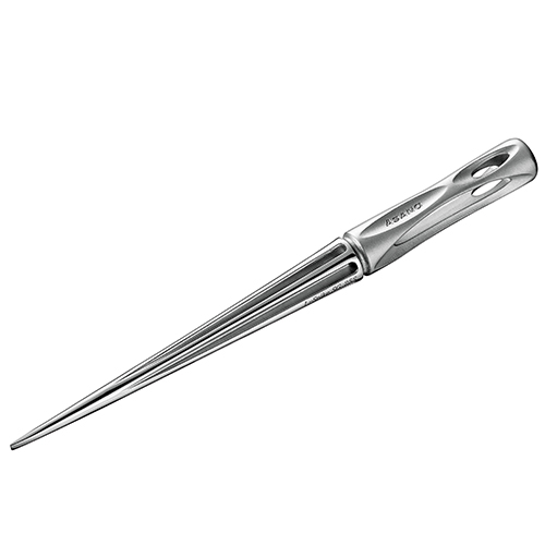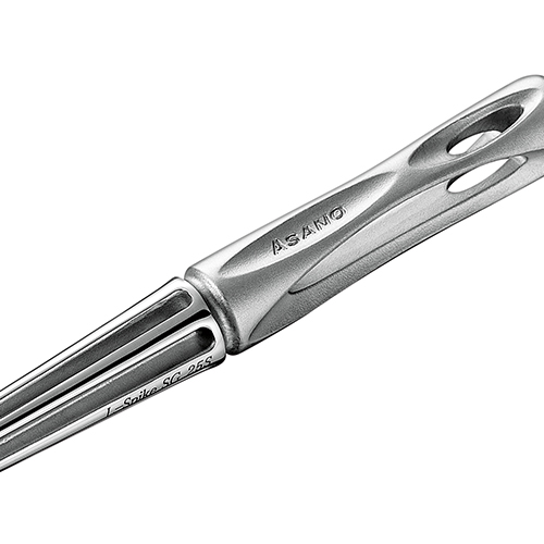 Las púas se utilizan para entrelazar cuerdas. Se han incorporado numerosas ideas al Light Spike SG para demostrar las características distintivas de los productos fabricados por ASANO, especialista en productos de acero inoxidable, que no escatima en gastos, ni siquiera en púas. Esta púa es diferente de las púas de aluminio que se comercializan actualmente, que son ligeras pero no resistentes, y de las púas mecanizadas, que son pesadas. La tecnología de fundición superior de ASANO se ha utilizado para crear Light Spike SG. Al aprovechar las características de la fundición que permiten la creación de formas libres, se han incorporado características tanto de funcionalidad como de diseño.